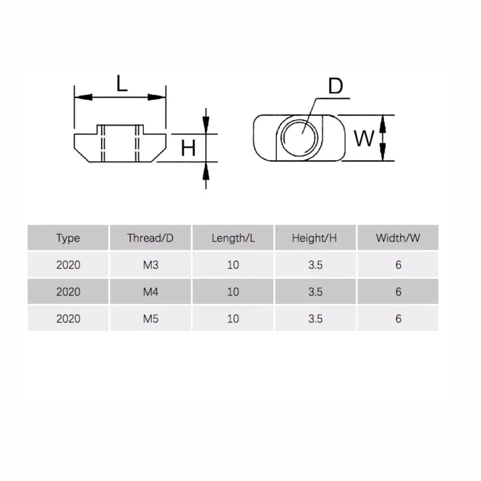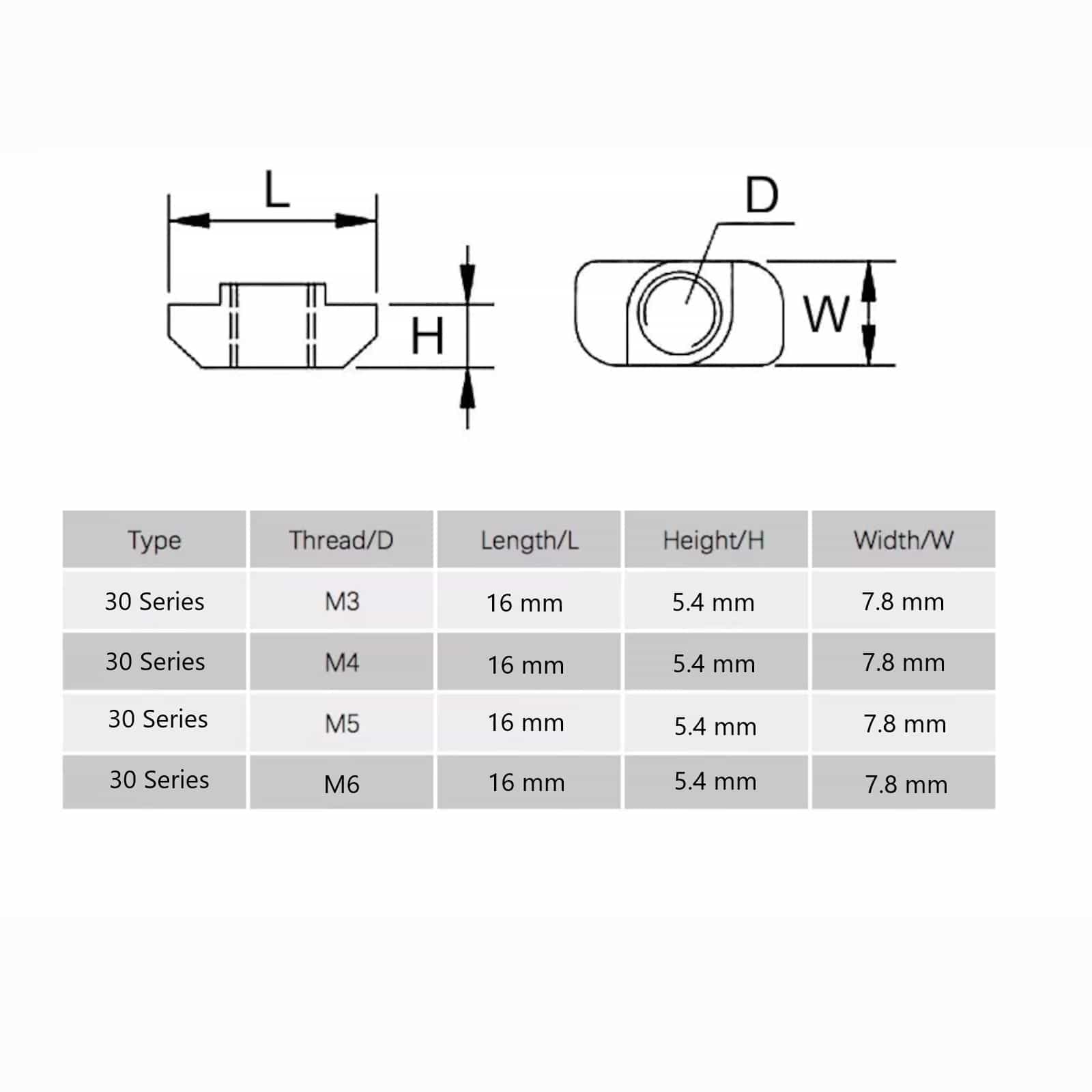 Hammerhead T-Slot Nuts for aluminum extrusion profile.