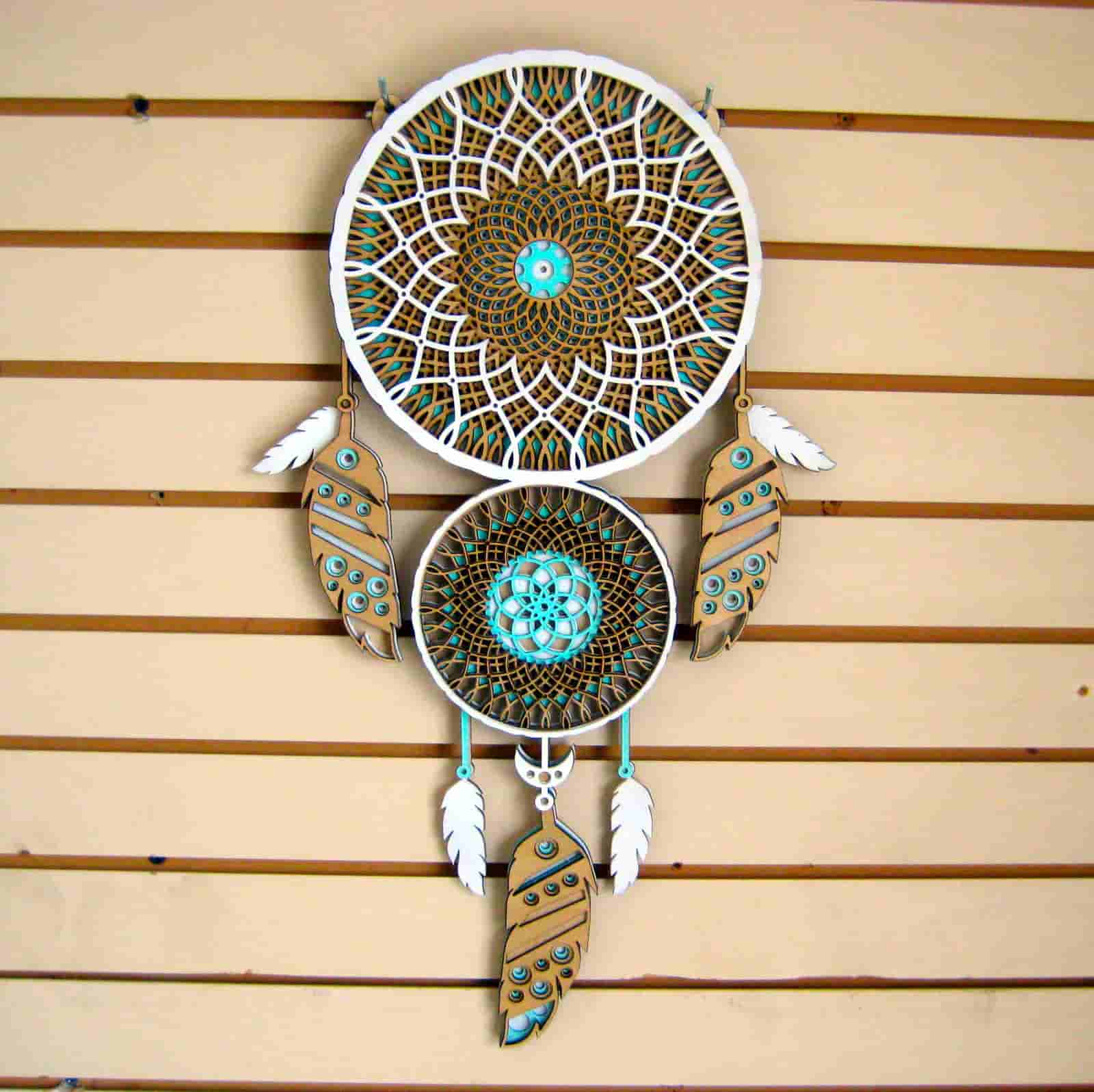 Experience Depth and Detail. > The “Boreal Mandalas” dreamcatcher is not your average wall decor. We’ve utilized high-density laser technology to cut six individual layers of premium wood, which are then meticulously stacked to a substantial 3/4-inch thickness. This layering creates shifting shadows and a sense of movement as you walk past the piece.